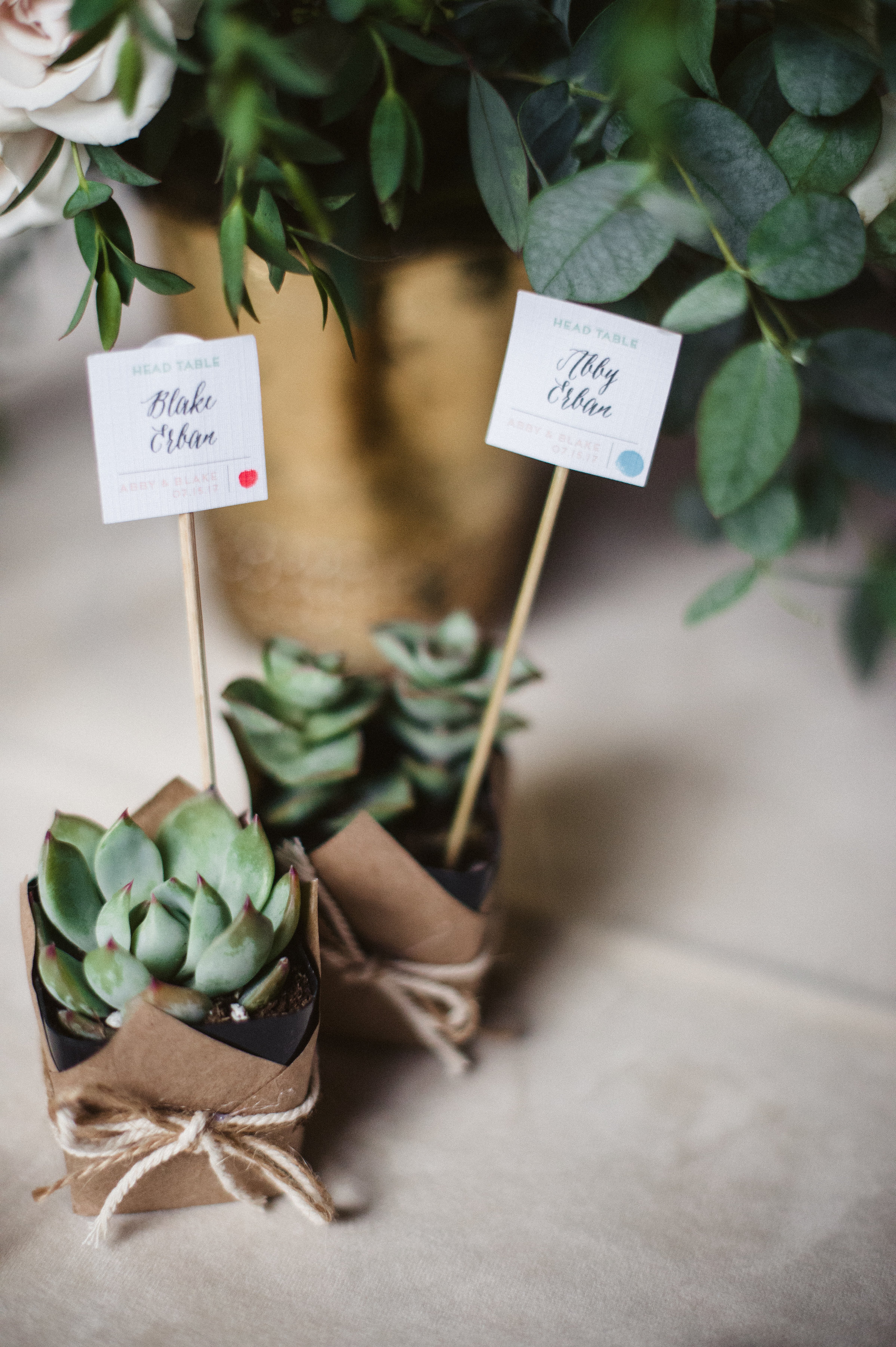 The wedding magazines say trends come and go, but one color scheme stands true to romance year after year- Blush, ivory and Gold. Add in touches of greenery and sustainable succulents and we have Abby and Blake's beautiful wedding.
