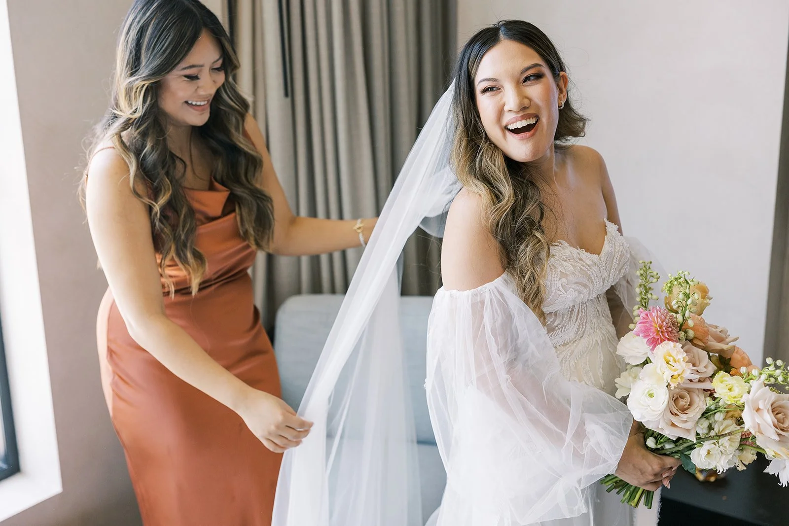 We love the way Rochelle’s airy sleeves looked with her bouquet - it was such a romantic vibe!