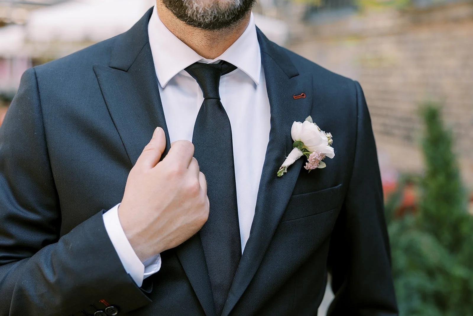 Blush ranunculus and dainty cottage yarrow adorned Eric’s lapel.