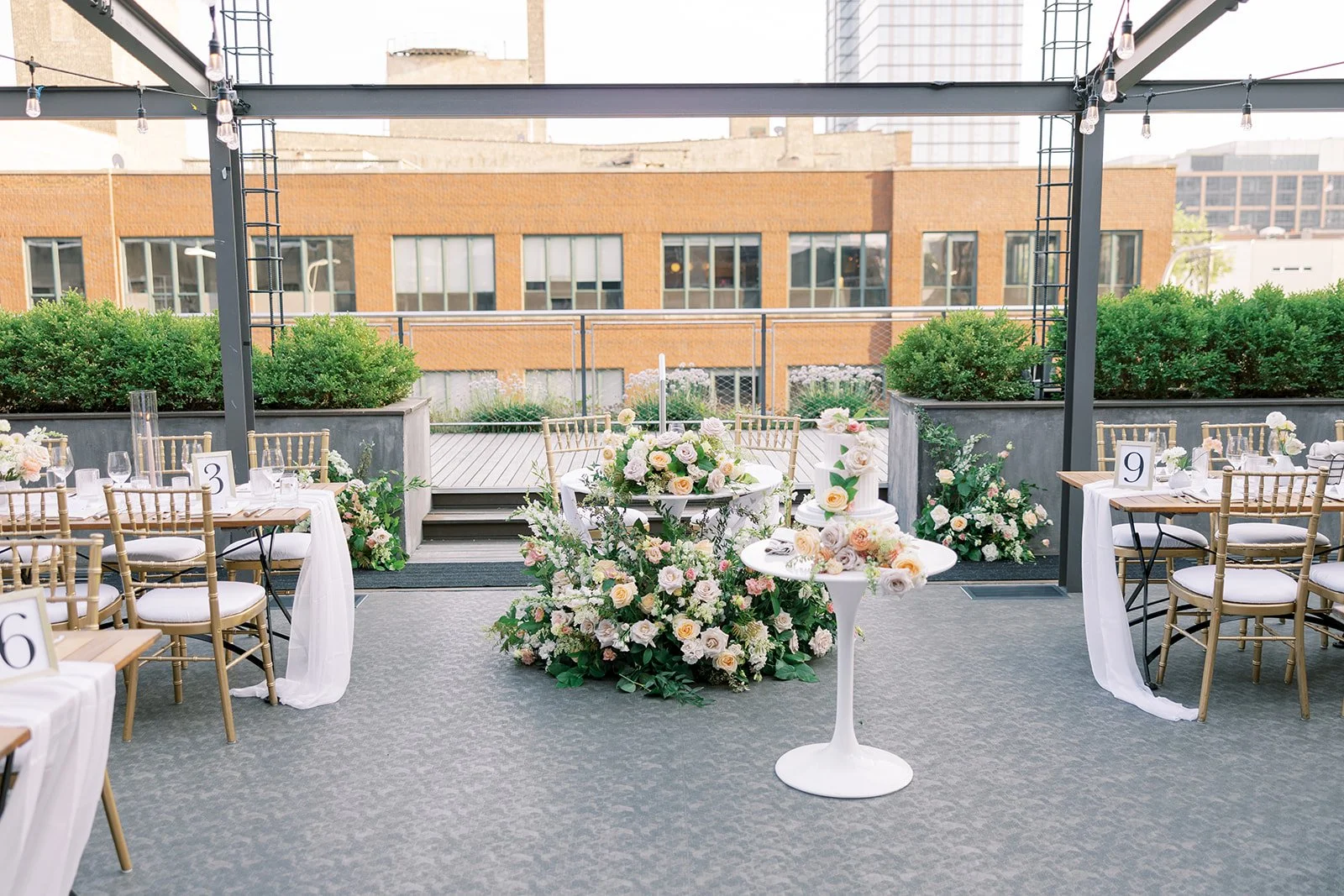 Summertime in Chicago is such a special time - it’s when the city is alive and in full bloom. We love it when couples take advantage of the immaculate vibe of Summertime Chi- especially when the weather is just right. Rochelle and Eric hosted their romantic wedding on the rooftop at Morgan’s on Fulton, and it was an unforgettable event. With the stunning Chicago skyline in the background, and all of their loved ones celebrating them, it was the perfect way to kick off their marriage. Special thanks to their photographer, Rachael Kazmier, and their planner, Ohana Events, for helping make their wedding day so amazing! Take a look at the following photos and learn more about their florals for their wedding on August 4th, 2023.